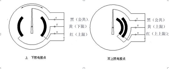 防爆电接点双金属温度计配有电接触装置& mdash即机械电接点。当被测介质的温度发生变化时,自由端的细轴和转向传动机构带动指针和动触头转动,指示刻度盘上的温度变化值。当它与固定触点(上限触点和下限触点)接触或断开时,电路系统中的继电器和接触器起作用,以达到自动控制和报警的目的。