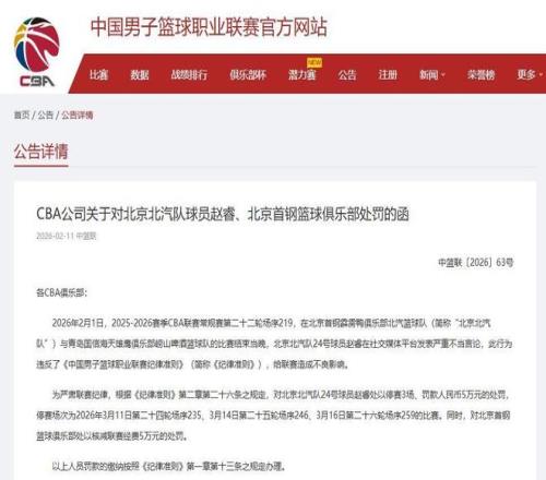 CBA公司迅速启动纪律程序,对其处以禁赛三场、??钊嗣癖椅逋蛟亩ジ翊Ψ#黄渌艟憷植恳啾煌胶思趿盐逋蛟?。