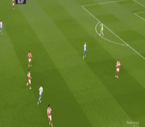 第88分钟,布莱顿造越位失误,哈弗茨选择自己小角度射门,维尔布鲁根封住了近角。