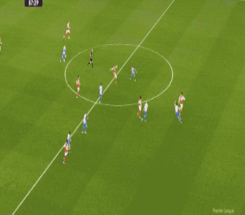 第56分钟,萨卡从中路一直横向盘带,尚未摆脱防守强行起脚射门,皮球打高了。