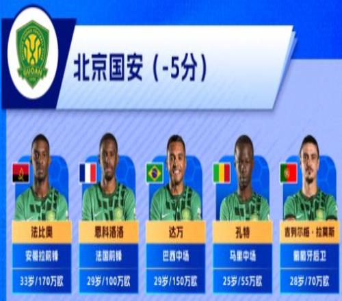 北京国安拥有5名当红国脚,包括2前锋+1中场+2后卫;山东泰山拥有4名当红国脚,包括2中场+2后卫;上海申花拥有4国脚,2中场+2后卫,外加归化李可。