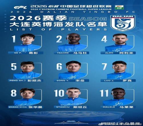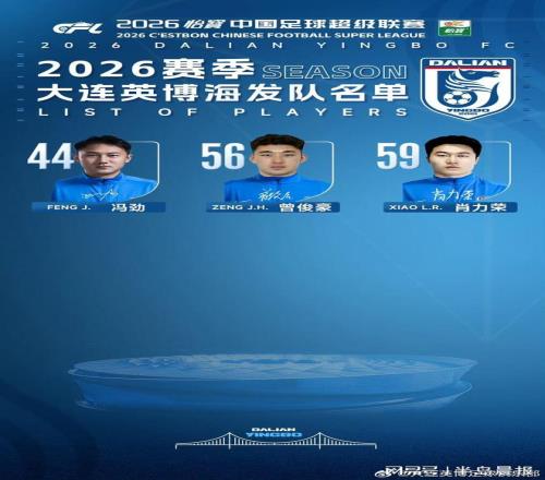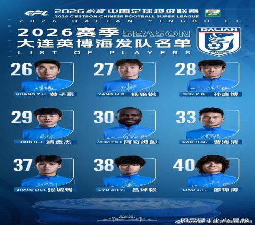 3月5日,距离中超首战还有2天,大连英博正式公布了新赛季名单。陆续公布新援时,他们的球衣号码就都已经确定,其中,罗竞7号,张华晨8号,斯坦丘10号,李昂17号,刘伟国20号,孙康博28号,阿奇姆彭30号,冯劲44号。年轻球员也都各自落位,5号属于小将彭顺杰。