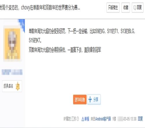 体育播报3月6日宣 近日,有网友发帖称自己发现一则有趣的数据:单数年淘汰Chovy的会受到惩罚,下一把一定会输,比如S9的IG,S11的T1,S13的BLG,S15的KT。双数年淘汰Chovy的会得到保佑,一直赢下去,直到拿到冠军。