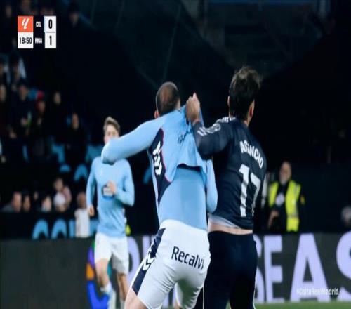 第71分钟,比赛争议的一幕出现,尤特格拉禁区明显的手球,但是裁判认为楚阿梅尼推搡在先,因此拒绝吹罚点球。第87分钟,塞尔塔快速发动反击,替补登场的阿斯帕斯晃过阿森西奥,劲射远角击中横梁弹出!皇马逃过一劫。补时阶段的最后一分钟,巴尔韦德禁区外的一脚劲射,击中对手产生折射破门,2:1!皇马完成绝杀!