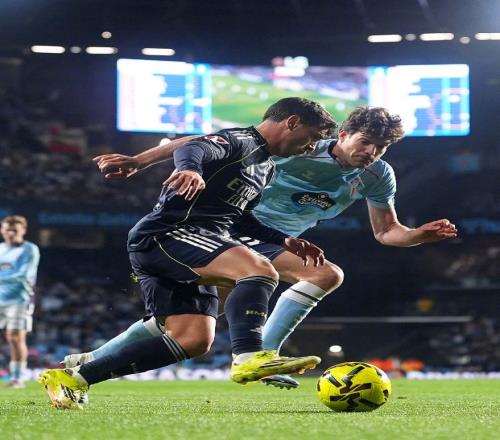 第73分钟猛攻不止的皇马,造成了塞尔塔球员禁区内手球,主裁判回看VAR后拒绝判罚点球,这也引发了皇马球员和球迷的不满,不甘心一场平局的阿韦洛亚,随后用贡萨洛加西亚替换下了毫无存在感的迪亚斯,伤停补时第94分钟,巴尔韦德大禁区前沿远射,皮球折射入网,帮助皇马艰难将比分定格为了2-1。
