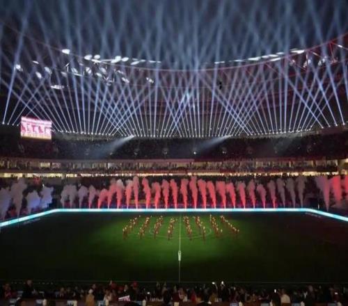 本次开幕式以一支极具视觉冲击力的赛季主题启幕影片震撼开篇,唤醒了每一个人心中对绿茵场的热爱。在现场光影秀的流转中,中超联赛口号“一起登场”亮相球场中央。伴随着激昂的音乐,在16位旗手的引领下,16名身着熊猫元素套装的球童与16名身着各队新赛季球衣的成都蓉城梯队球员携手入场,激光在场中同步雕刻出各队队徽。最终16面大旗挥舞,场中呈现出2026怡宝中超联赛logo,寓意16支队伍齐聚新赛季舞台。
