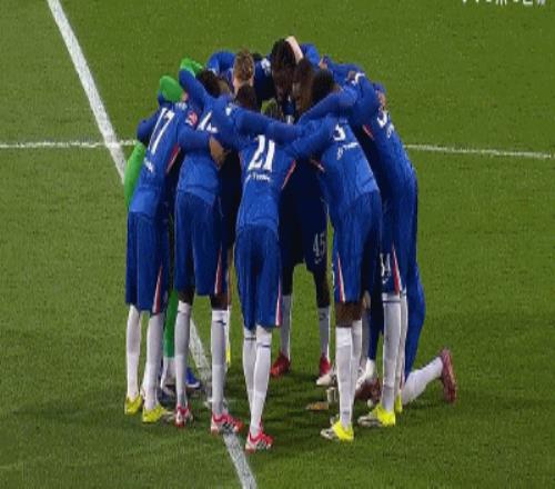 铁血蓝军,切尔西众将士聚在中圈打气喊话