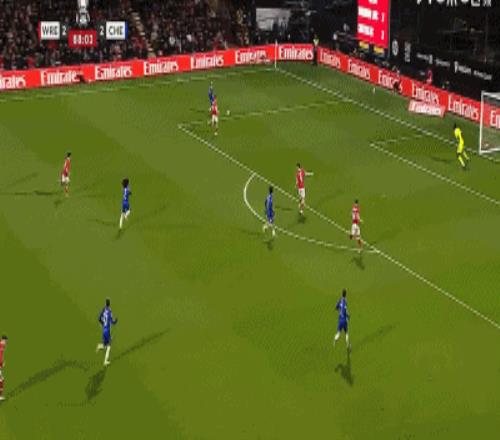 第79分钟,再次领先,温达斯远射,多伊尔脚后跟破门,切尔西1-2落后