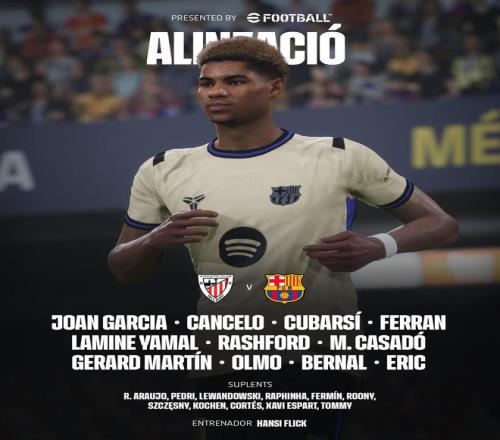 巴萨客战毕包:亚马尔、拉什福德首发,卡萨多、坎塞洛出战